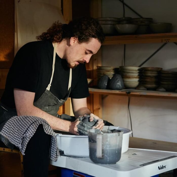 Ceramicist Danny Aitken at work in his studio. Picture: Olivia Brabbs...