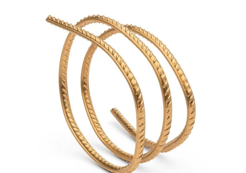 Rebar by Ai Weiwei in 24k gold being shown by the Elisabetta Cipriani Gallery. It can be worn as a ring, bracelet or necklace