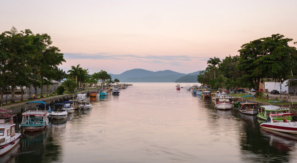 Roughly halfway between São Paulo and Rio de Janeiro, the coastal town of Paraty (population 45,000) isn’t the easiest place to reach. It requires a four-hour, mostly mountainous drive from either city, a 45-minute helicopter charter or arrival by sea. It’s that relative seclusion that keeps the tourist hordes and unbridled development at bay, despite the town’s obvious appeal. Set on Brazil’s Costa Verde, with mountains covered in rainforest on one side and the emerald green waters of Ilha Grande Bay on the other, Paraty (pronounced para-CHEE by locals), preserves more than 30 blocks as its historic quarter, a grid of pedestrian-only cobblestone streets lined with whitewashed 18th- and 19th-century facades, many of them remnants of the Portuguese colonial era.