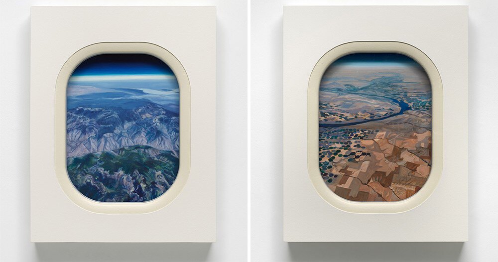 DB: In the series, you recreate views from an airplane window — what inspired you to frame these paintings in such a specific manner?