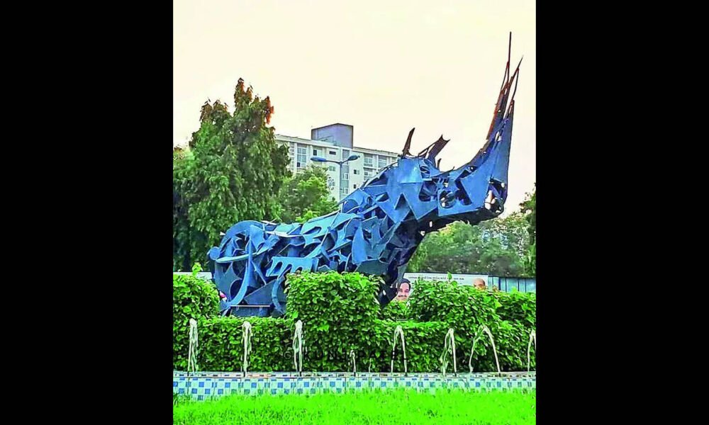 Artists demand re-installation of iconic rhino sculpture at Genda Circle in Vadodara | Vadodara News