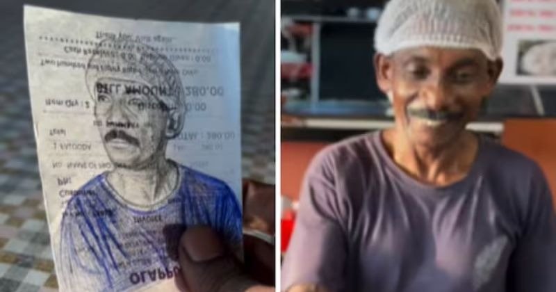 When Akash finishes the pen sketch, he hands it to the man, who is visibly shocked and happy. The waiter constantly complimented Akash on the wonderful present, and the video shows him sharing the snapshot with his coworkers, who all admire the artist.