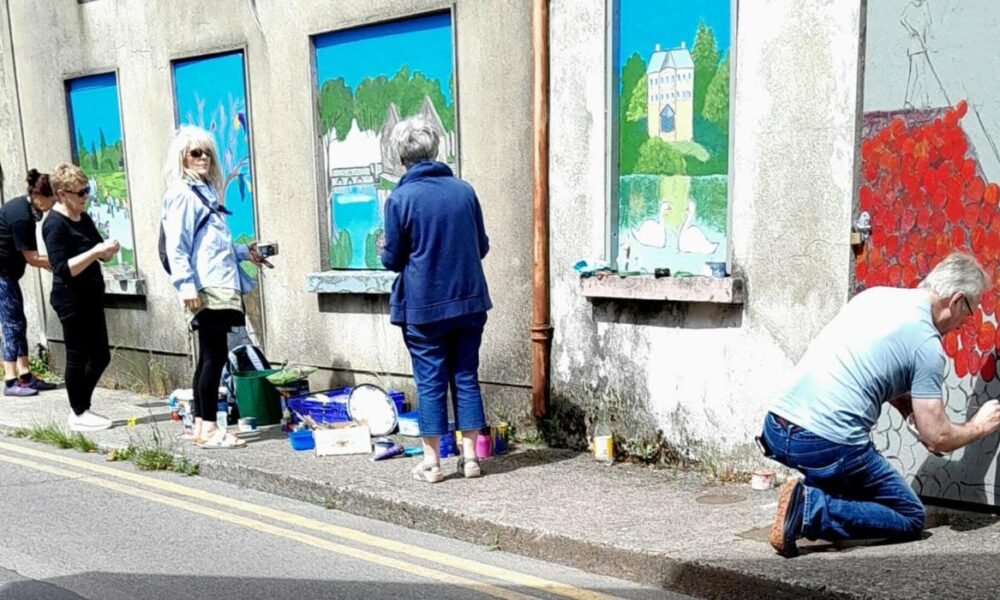 Artists paint boarded-up windows of old buildings in Tipperary