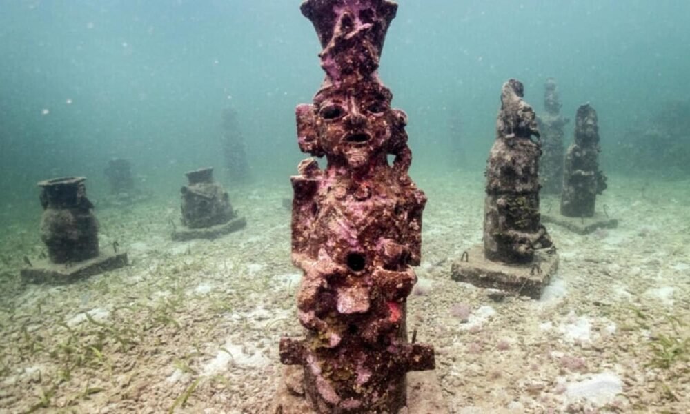 On the Caribbean seafloor, an unusual sculpture gallery is taking shape with an equally unusual purpose: to provide homes for corals under threat from tourism and climate change. Created by potters Hugo Osorio and Pedro Fuentes, 25 figures so far form a sort of artificial reef in the blue waters around the paradisiacal Isla Fuerte, off the coast of Colombia. They stand 1.5 meters (almost five feet) tall, scattered at a depth of about six meters around the seafloor, attracting visitors — mostly fish, but also divers.