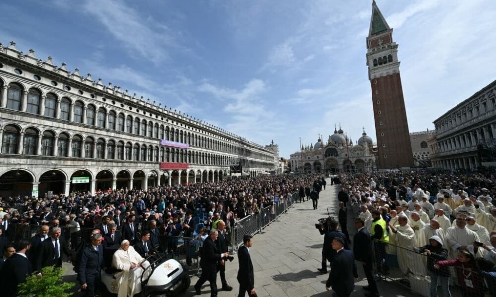 The Pope closed his visit to Venice’s “Biennale” festival with Mass in the square in front of the city’s famed Basilica of Saint Mark, where the remains of Mark the Evangelist, author of one of the four Gospels, are buried.