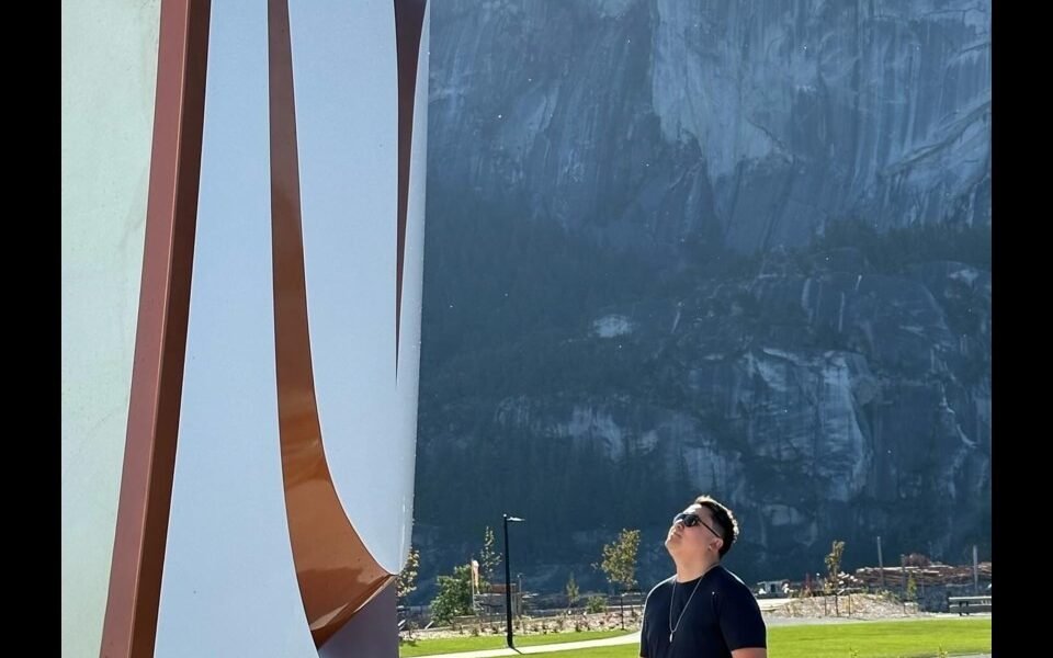 Harry’s work, including the “Welcome Gate” sculpture at Sp’akw’us Feather Park,  exemplifies the integration of traditional and modern influences.