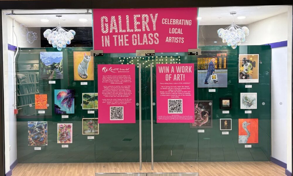 Gallery in the Glass is a community-focused project giving students from Solihull College’s ’Get Gallery Ready’ bootcamp a high-profile platform to exhibit their work right beside leading retail brands.