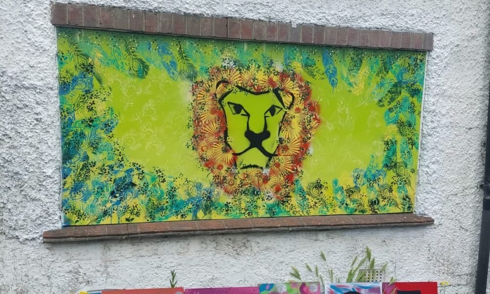 The mural in progress (Haslemere Fringe Festival)