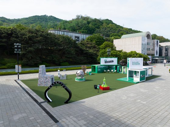 Artist Kim Su-rin’s artworks “Green Pagoda: A Sustainable Legacy” and “C-Stool: Eco-Cycle Seating.” [CASETIFY]
