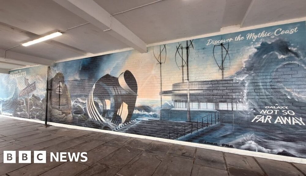 The mural includes nods to the filming of Andor and to local artworks, such as the Sea Ogre on the beach