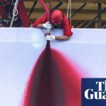 The activists sprayed 1,000 litres of the blood-red liquid onto the canvas (Image: Greenpeace) Greenpeace says the ‘artwork’ is a “stark visualisation of the wound inflicted on both humanity and the earth by the fossil fuel industry”.