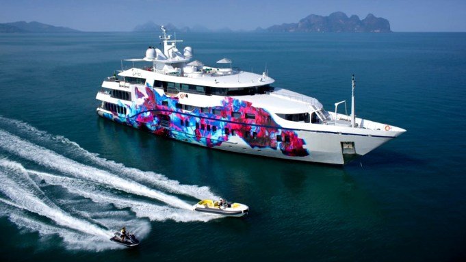 Standing out from the crowd is not every yacht owner’s desire, but those that court the spotlight often do so in style. Hong Kong billionaire Victor Hwang, owner of the 226-foot Saluzi, made sure his boat makes a statement in a sea of white by graffitiing the hull with bright-pink artwork by Beijing-born artist Li Jiwei.