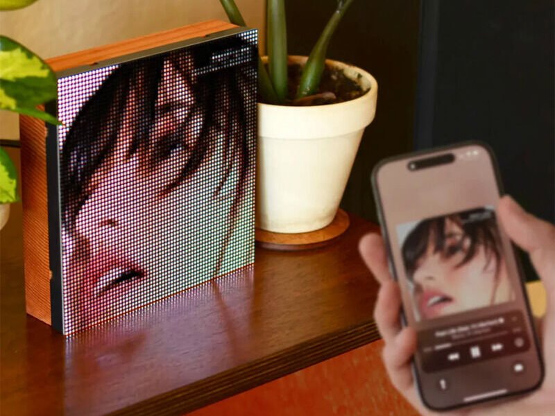 The Tuneshine album art display gives the artwork a pixelated appearance for an artful touch and is compatible for use with Android and iOS devices. Users can connect the display with a variety of music streaming services like Spotify, Sonos, Apple Music and more to display artwork accordingly.
