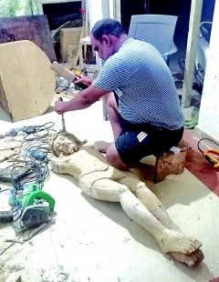 Lazar Fernándes, one of the few surviving Goan wood sculptors from Raiá, mentions that he finds it extremely difficult to continue with his family occupation of making wooden sculpture, with almost no demand for wooden sacred art in today’s time since wood has almost completely been substituted with plastics. Lazar mentions that his family has been into wood sculpting since the last century. His father, Pedro Antonio Costa Fernandes would sculpt with loads of love and passion which he has now taken over, he adds. In those days they were restricted only to carving Christian sculpture for churches, chapels and private homes, but today Lazaro is very open to sculpt images for clients of any faith. He states that the wood generally used in sculpting is teak, Shivann (Gmelina arboria) and jackfruit. Shivann is a light weight white wood and was generally used to build high altars and big statues in churches to reduce the weight of elaborate carvings/statues mounted/placed on/at high locations. He states that Rosewood and Ebony was rarely used since it was hard to carve, heavy and costlier.