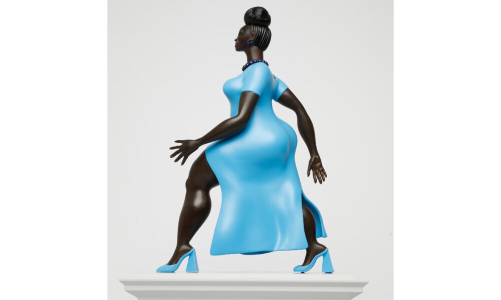The 10ft sculpture depicts a confident woman of colour striding in a blue dress and heels and is meant to represent a contemporary everywoman that ‘many can relate to’. She’s made from bronze and patinated with a rare pigment called ‘lapis lazuli blue’.