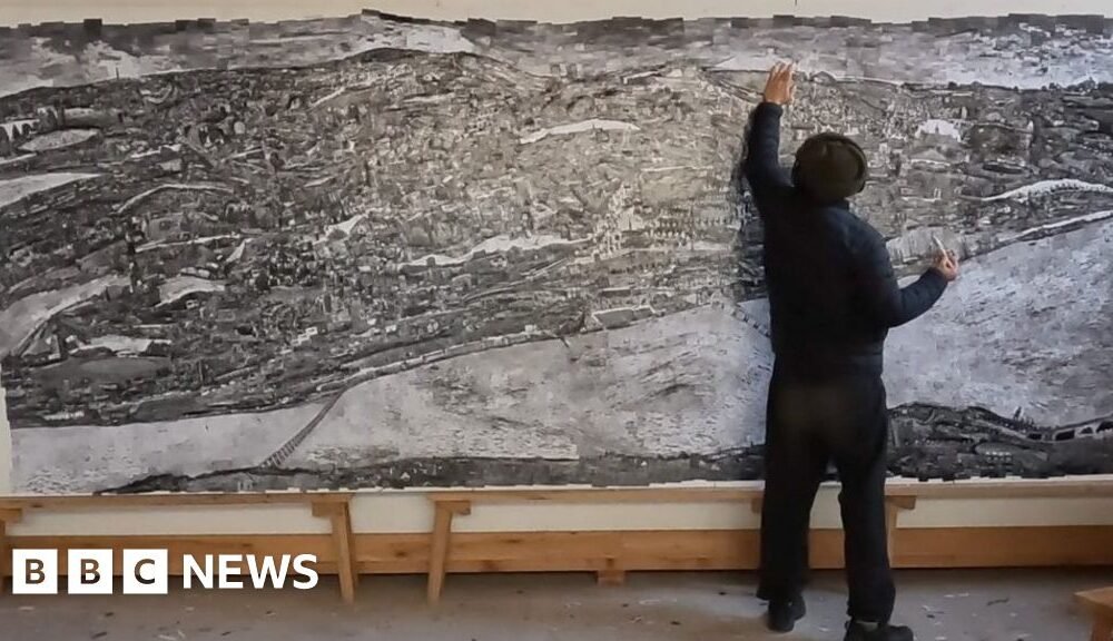The 5m (16ft) wide work was created by Japanese photographer Sohei Nishino, who lived in the city for a month for the V&A Dundee commission.