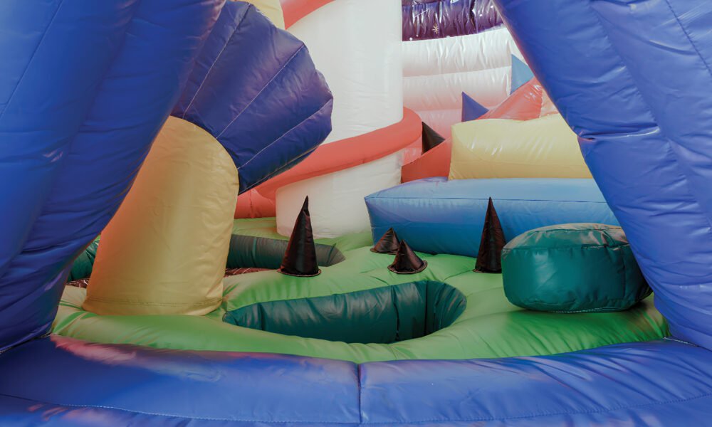 The structure was designed so that visitors would trip and “inevitably fall” down the perilously narrow inflatable stairs. There is no way that it would pass its [safety] survey. Creel contends that “only by forgetting about the laws that reign our world will visitors be capable of navigating the space”. Despite knowing that the spikes inside the sculpture are air-filled PVC, part of you does fear being impaled as you are watched over by an all-seeing eye-like set of concentric circles. “Even if only for a second, people got to experience the magic circle, a state of mind where the rules of reality are suspended, and play becomes true and meaningful,” explains Creel.