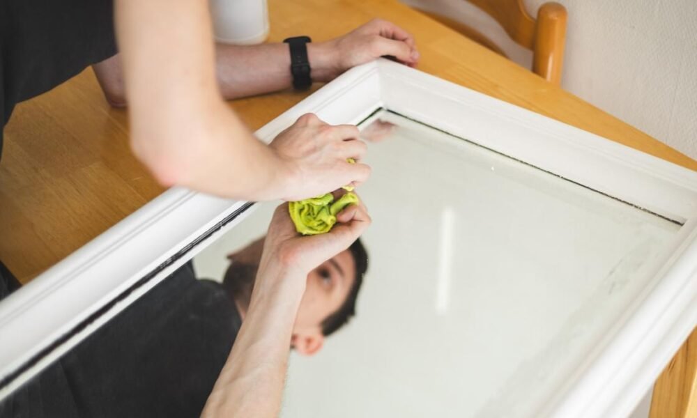 Man wiping glass of framed mirror – Natakor/Getty Images