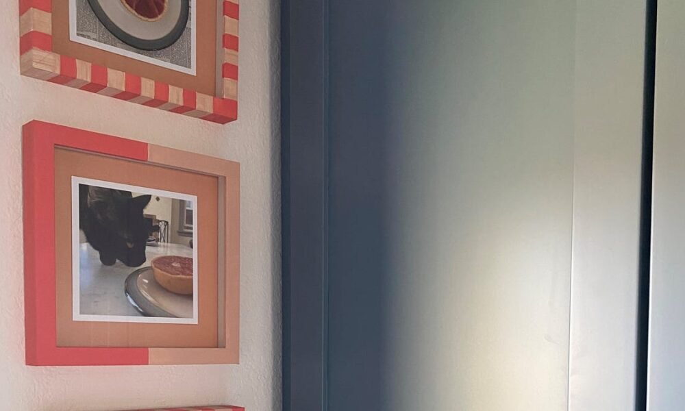 Recently, we bought one of those giant bags of grapefruit from Costco. One sunny Saturday morning, we were all enjoying the cold, fresh grapefruit for breakfast. The beautiful coral, pink and orange colors of the fruit struck me, as well as how pretty they looked on their plates at the table. An idea for a special art project was born. Each one of us took a photo of a grapefruit, in whatever setting we wanted. I just had these printed as 5 x 5 square prints, and am embellishing plain white frames to create a vibrant, joyful focal point in the kitchen.
