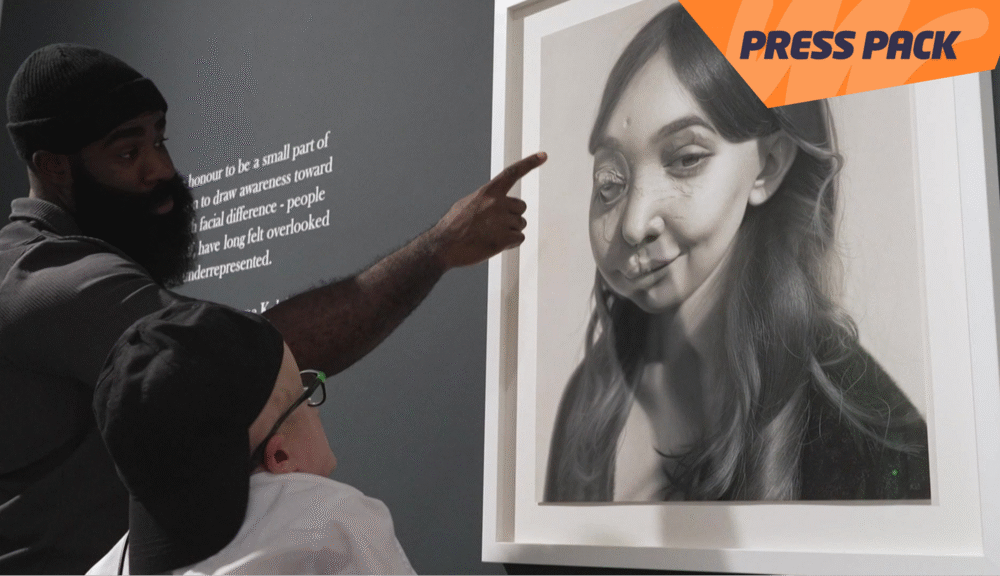 Artist Kelvin Okafor is celebrating people with visible differences, including scars, a skin condition called vitiligo and hair loss in an art exhibition.