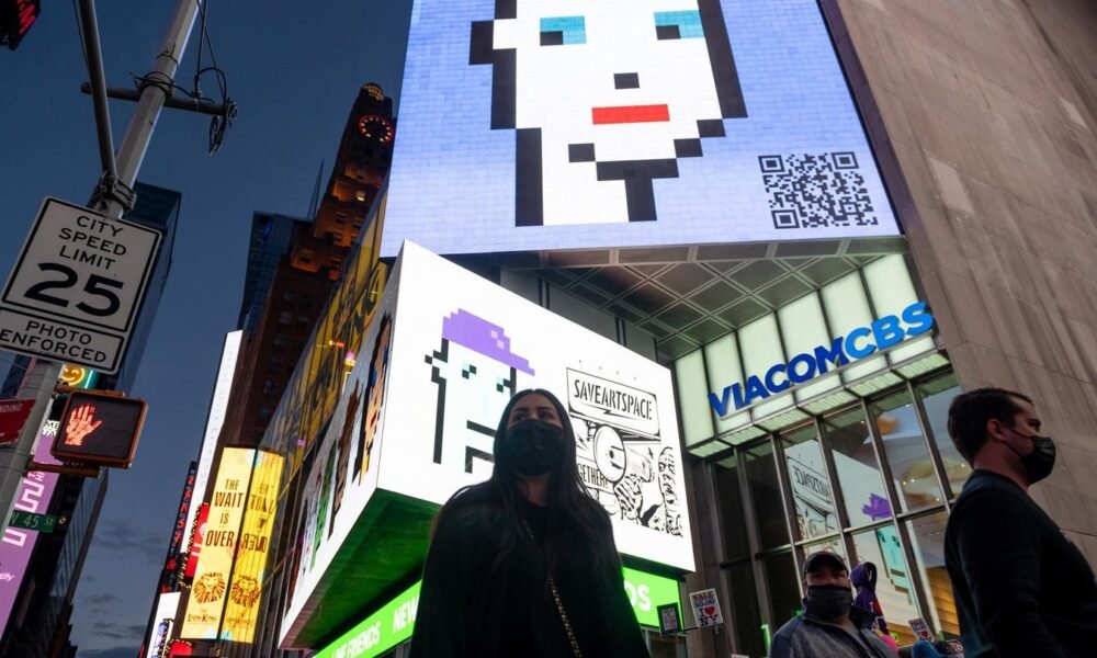 This article is more than 2 years old. CryptoPunk digital art non-fungible token (NFT) displayed on a digital billboard in Times Square on...