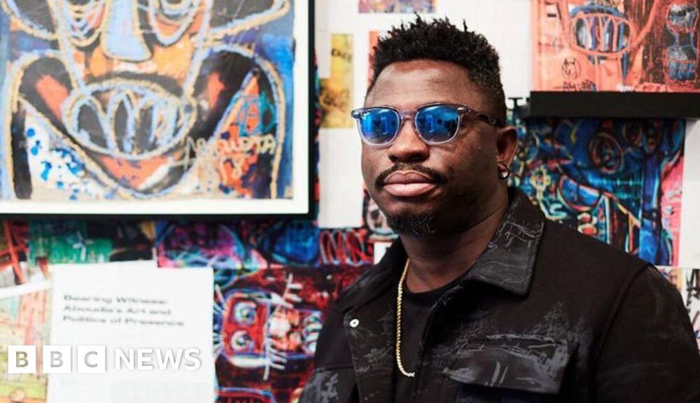 Image source, Larkin Durey Image caption, Aboudia’s work has been shown in exhibitions held in Abidjan, London, New York and Tel Aviv...