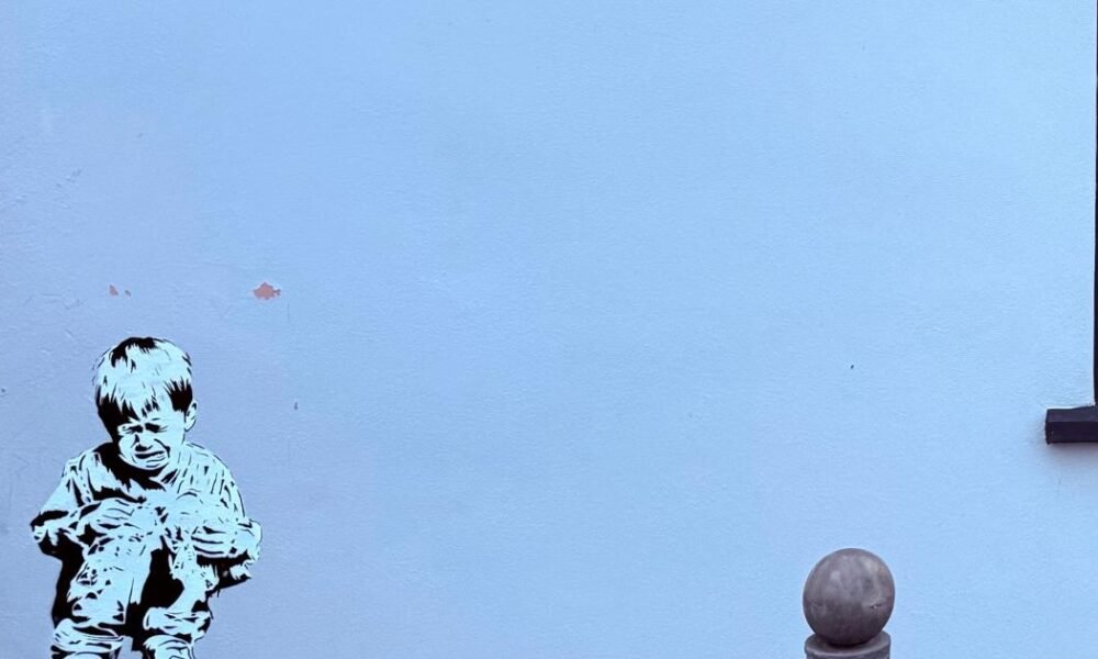 Black and white artwork depicting a young boy sitting down in tears has been seen on the Surf Bay Leisure Somerset Sales Centre near...