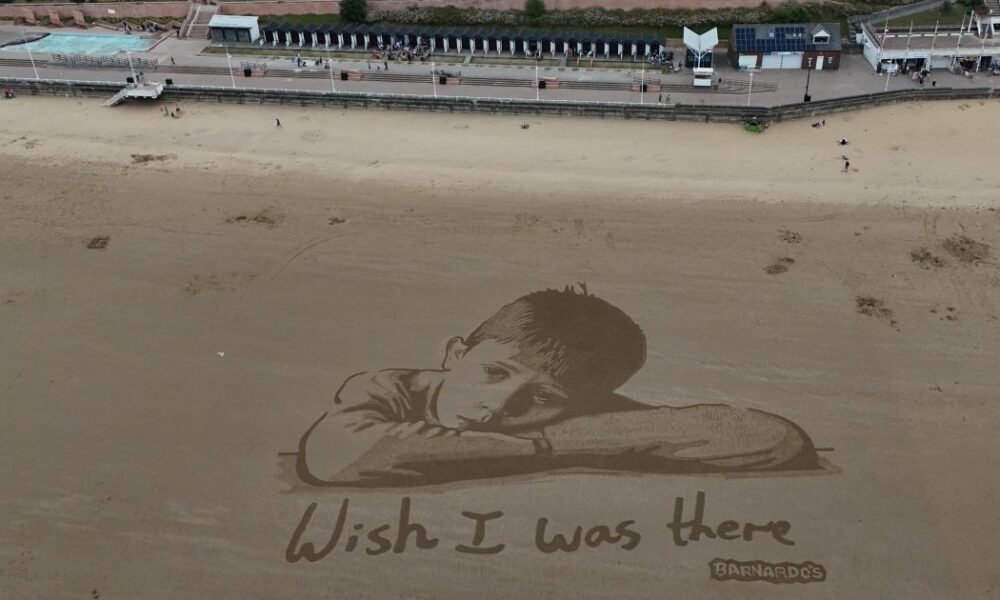 The 50-square-metre piece on Bridlington beach in East Yorkshire, created by landscape artists from Sand In Your Eye and the charity’s...