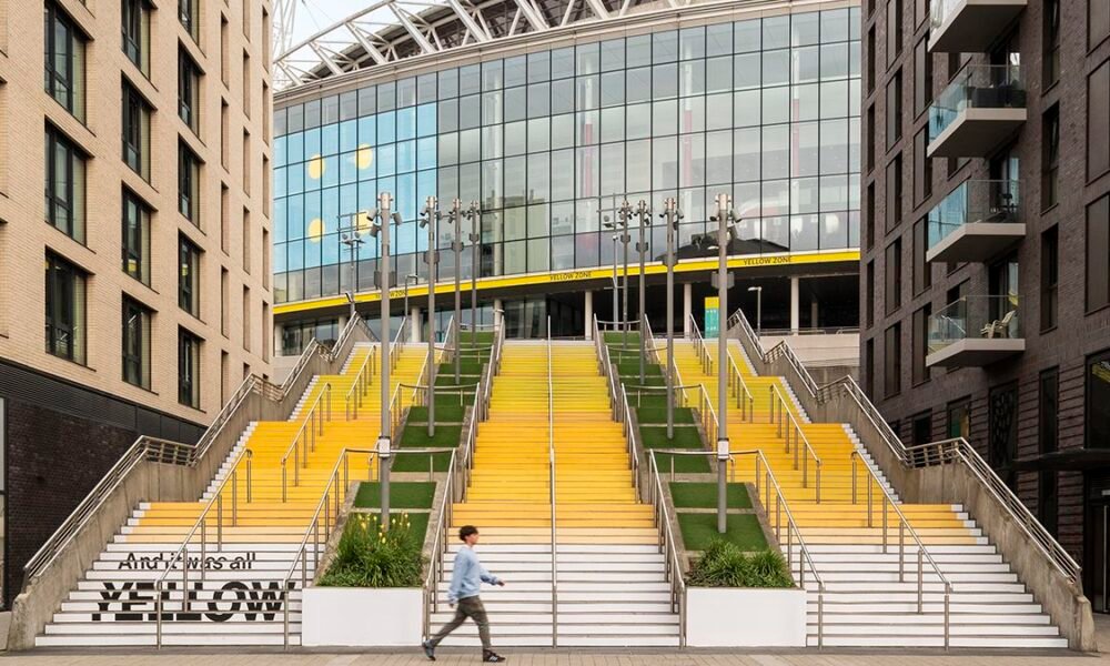 “The installation mirrors the song’s structure, step by step, turning lyrics and melody into a visual path”: Wembley Stadium unveils an all...