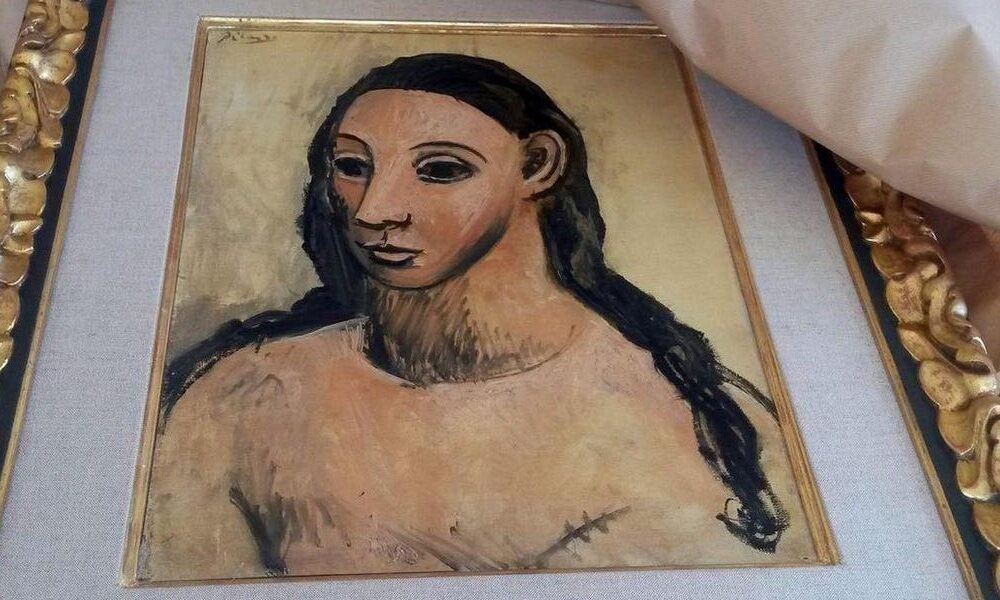 Angle down icon An icon in the shape of an angle pointing down. Seized painting “Head of a Young Woman” by Pablo Picasso....