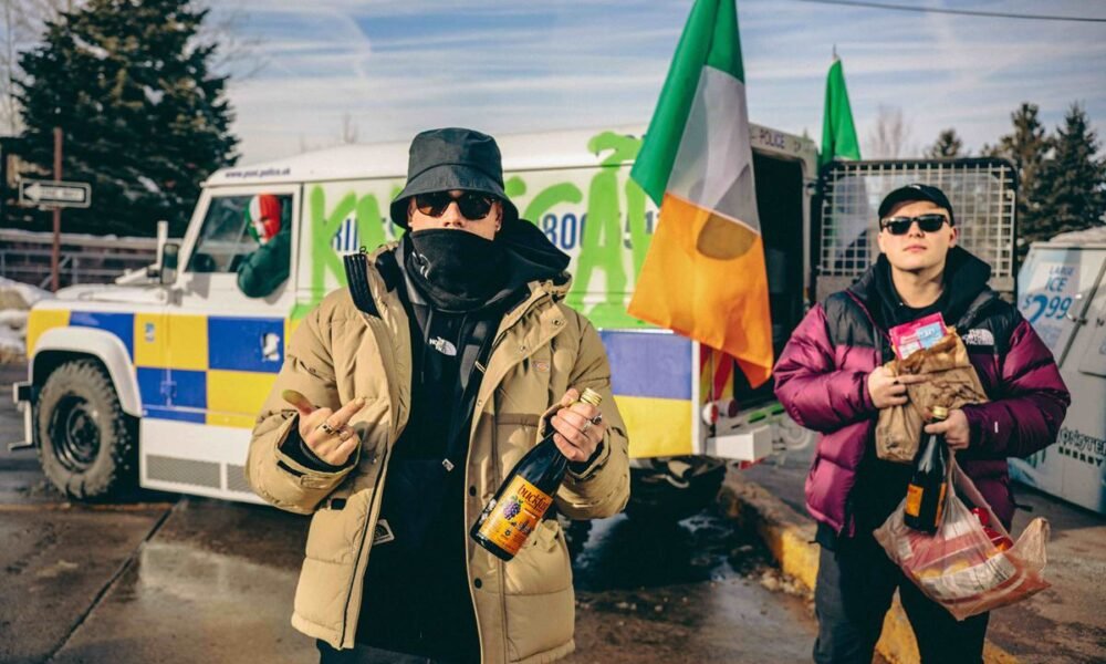 Speaking of the new single, Kneecap says it was inspired by “The mental reaction of the media to our mural unveiling of a police jeep on fire. The mural ended up on the BBC with Steven Nolan who’s like the Piers Morgan of the North of Ireland. They had a massive debate about the painting, and he says, ‘The band Kneecap claim the mural is just a piece of fine art’. So we sampled it into a dance tune and dropped it in where it kicks. That’s where the title comes from – when we were getting stick about the mural that’s the term we used. Because that’s the best description isn’t it? If you don’t get it, you don’t get it. It’s still fine art.”