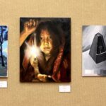 Those bags with items inside hanging underneath the paintings in “Wet Night—Early Dawn—Scat Chant—Pilgrim’s Song” are themselves the focus of some of the ‘Water Composition” sculptures featured in another gallery. These assemblages of bright-colored water locked into clear vinyl bags hanging from a rope or tied down to the floor were some of her earliest works, and they’re still as strange and startling now as they surely were then. Less immediately eye-catching but similarly scintillating is a more recent Untitled work from 2023 that uses earth pigment, strings, and pins to create what could be seen as her own take on the American flag, except with red circles within squares instead of red and white stripes, and shorn of a blue square with 50 stars on it. Maybe one could read some kind of political intent into it, but as with all of Nengudi’s work, it stands above easy ideological pigeonholing.