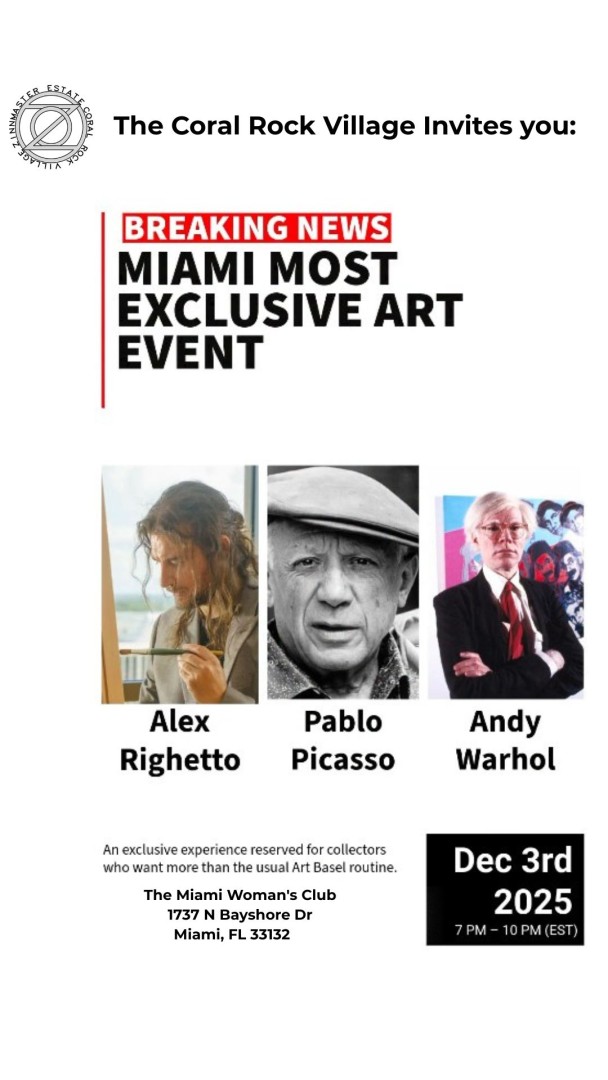 Art Against Human Trafficking, hosted at the historic Miami Woman’s Club, brings together the global art elite, civic leaders, and human-rights champions for an evening where masterworks, mission, and Miami’s cultural soul collide.